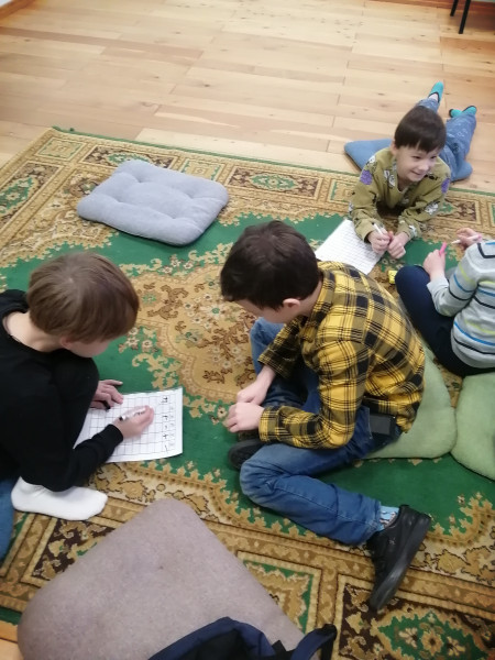 С двумя старшими группами мы ещё занялись задачами, которые решаются с помощью таблиц. 3-4 классу дала прямо максимально простые — чтобы только внимательно прочитать текст. Совсем с небольшими усложнениями, и они очень большие молодцы. Я с ними активно стала практиковать групповую и парную работу, и очень неплохо зашло, прямо они друг другу объясняют, сидят работают. И это гораздо лучше, чем когда каждый сам по себе. Прямо я стала большой сторонницей группового обучения.