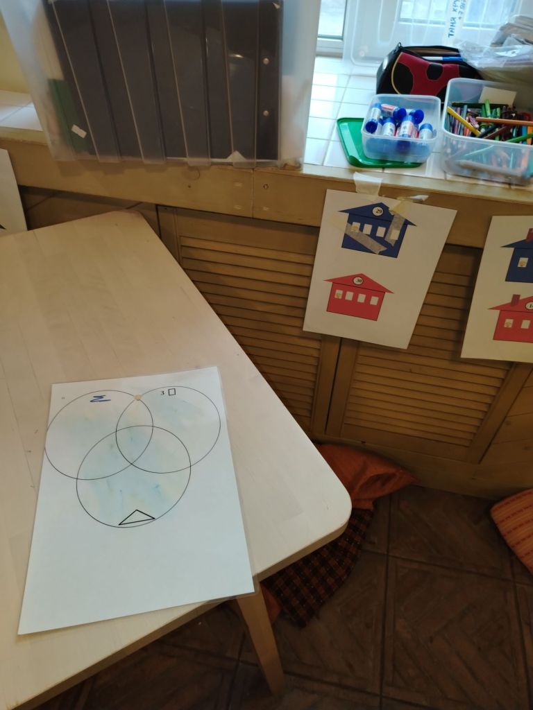 Потом дети проходили квест с домиками, вписывая в разные области номера домов.