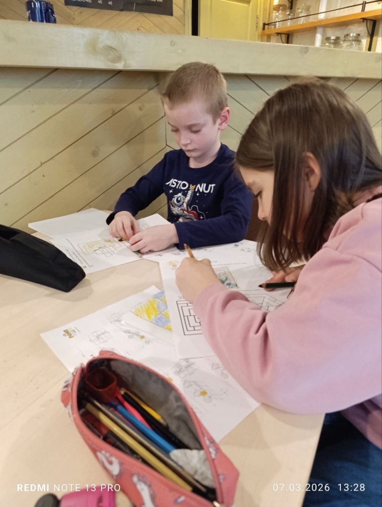 И говорили про теорему о четырех красках. Сначала рисовали карту, которую можно раскрасить двумя красками, а потом делали задания по раскраске более сложных карт.
