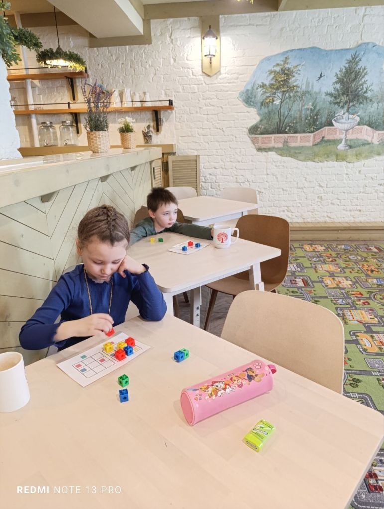У шестилеток было задание про волшебные квадраты. Это такие таблички, заполненные квадратами трёх цветов, у которых в каждой строчке и каждом столбике есть все три цвета. В задании были частично заполненные квадраты. Нужно было закончить. Некоторым было очень просто, а некоторым нужно было очень сосредоточиться.