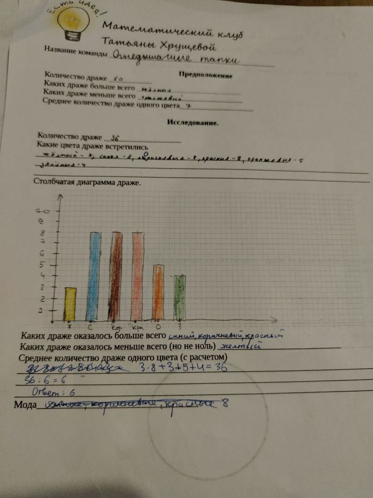 Потом разговаривали про статистику, что такое среднее арифметическое, мода и медиана.
